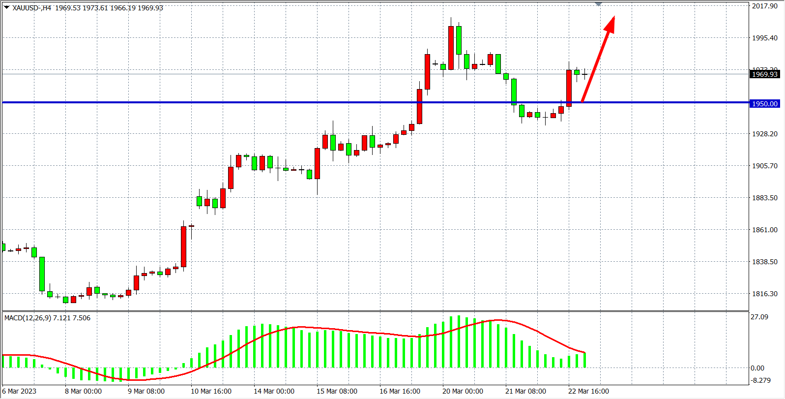 现货黄金XAUUSD四小时图