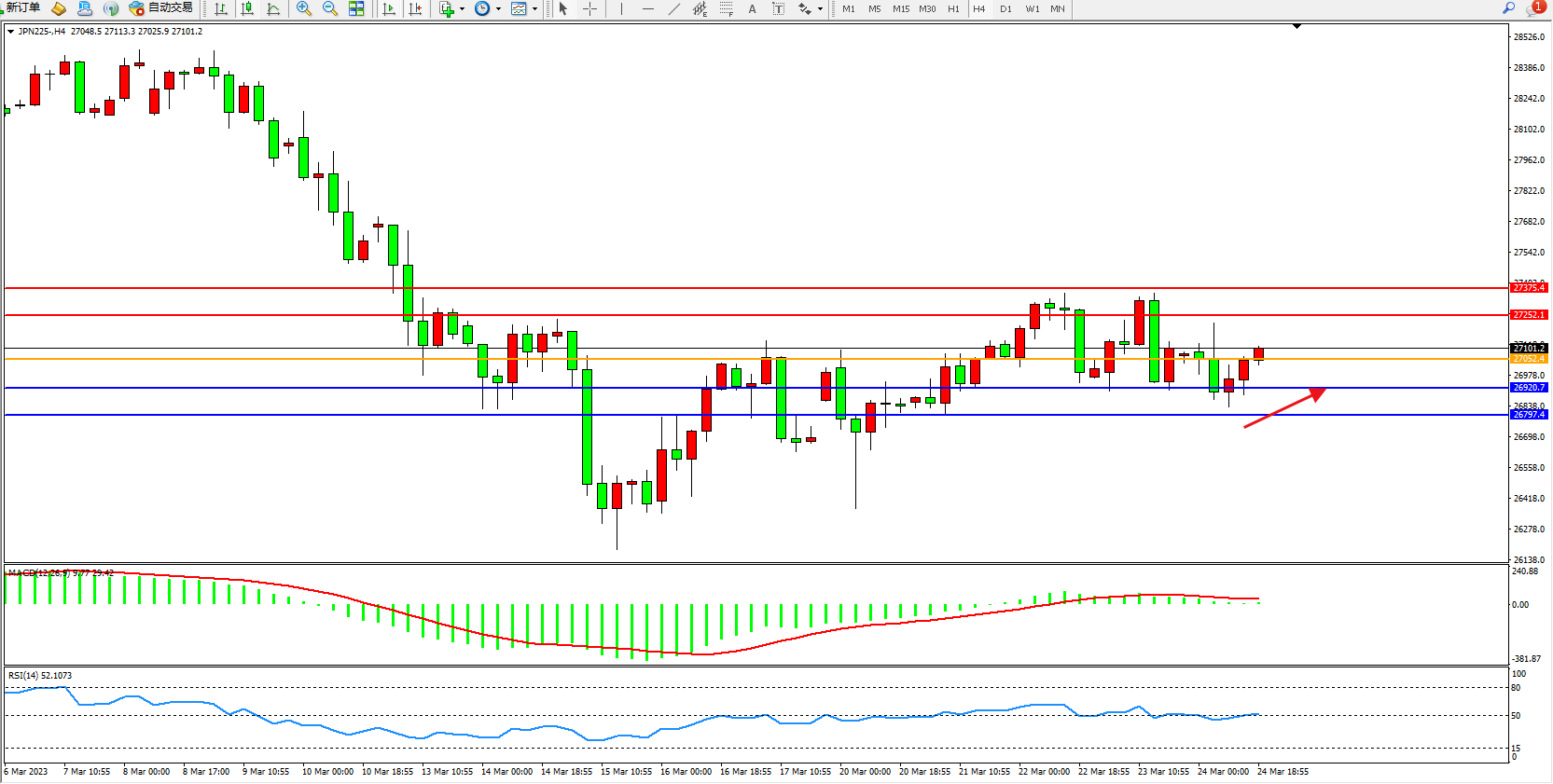 日经225指数3月24日(周五)收盘下跌52.11点,跌幅0.19%,报27367.50点。日本2月份的核心消费通胀率有所放缓,但扣除能源成本后的物价指数升幅创下40年来的新高,这表明成本推动物价的压力可能比决策者认为的持续时间更长。