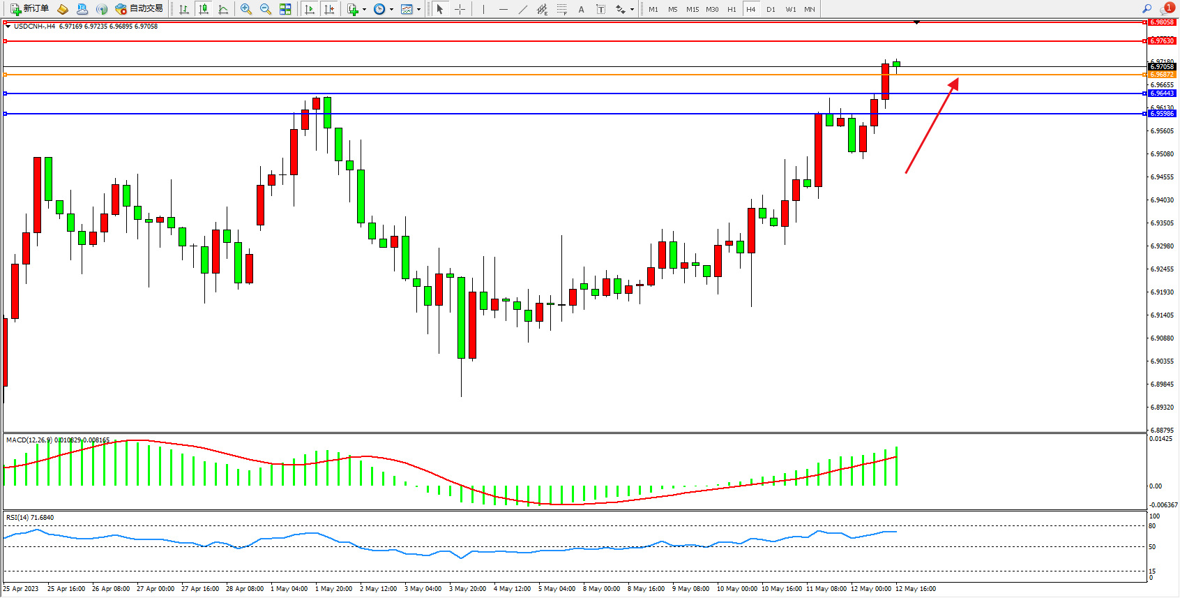 交易策略:6.96872上方看涨,目标6.96443 6.95986