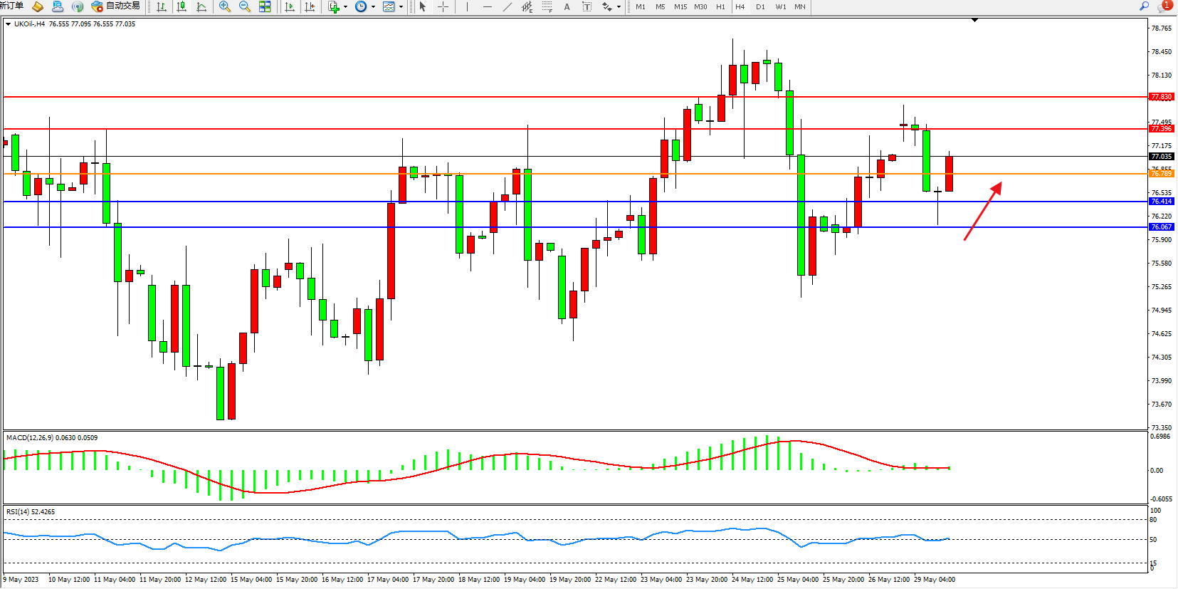 布油维持77.035附近震荡,隔夜受美国阵亡将士纪念日假期影响,ICE旗下布伦特原油期货合约交易提前于北京时间30日01:30结束。
