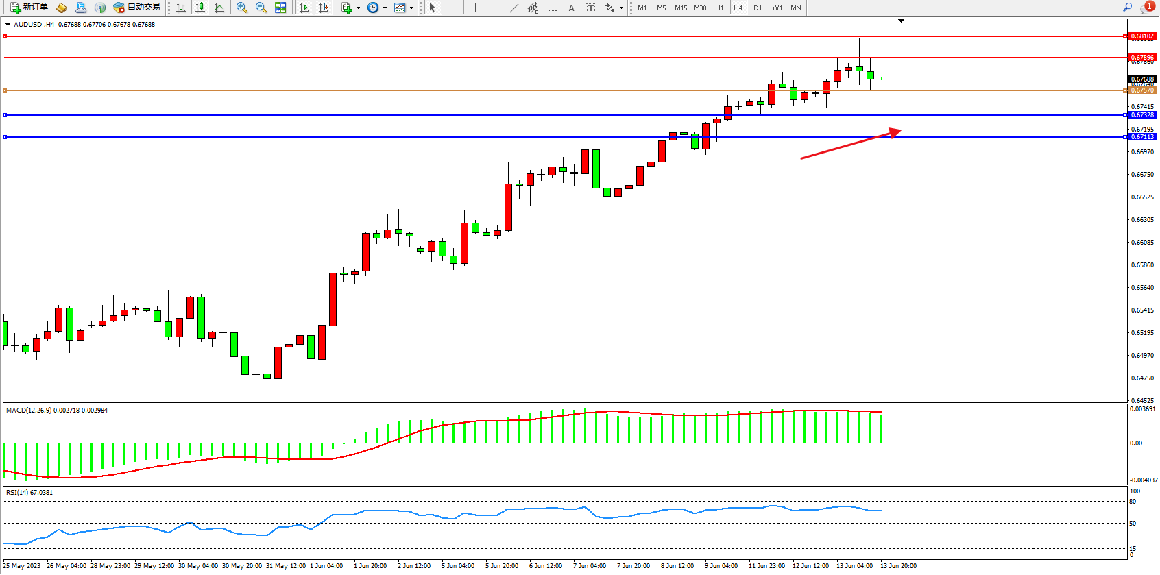 交易策略:0.67570上方看涨,目标0.67896 0.67102