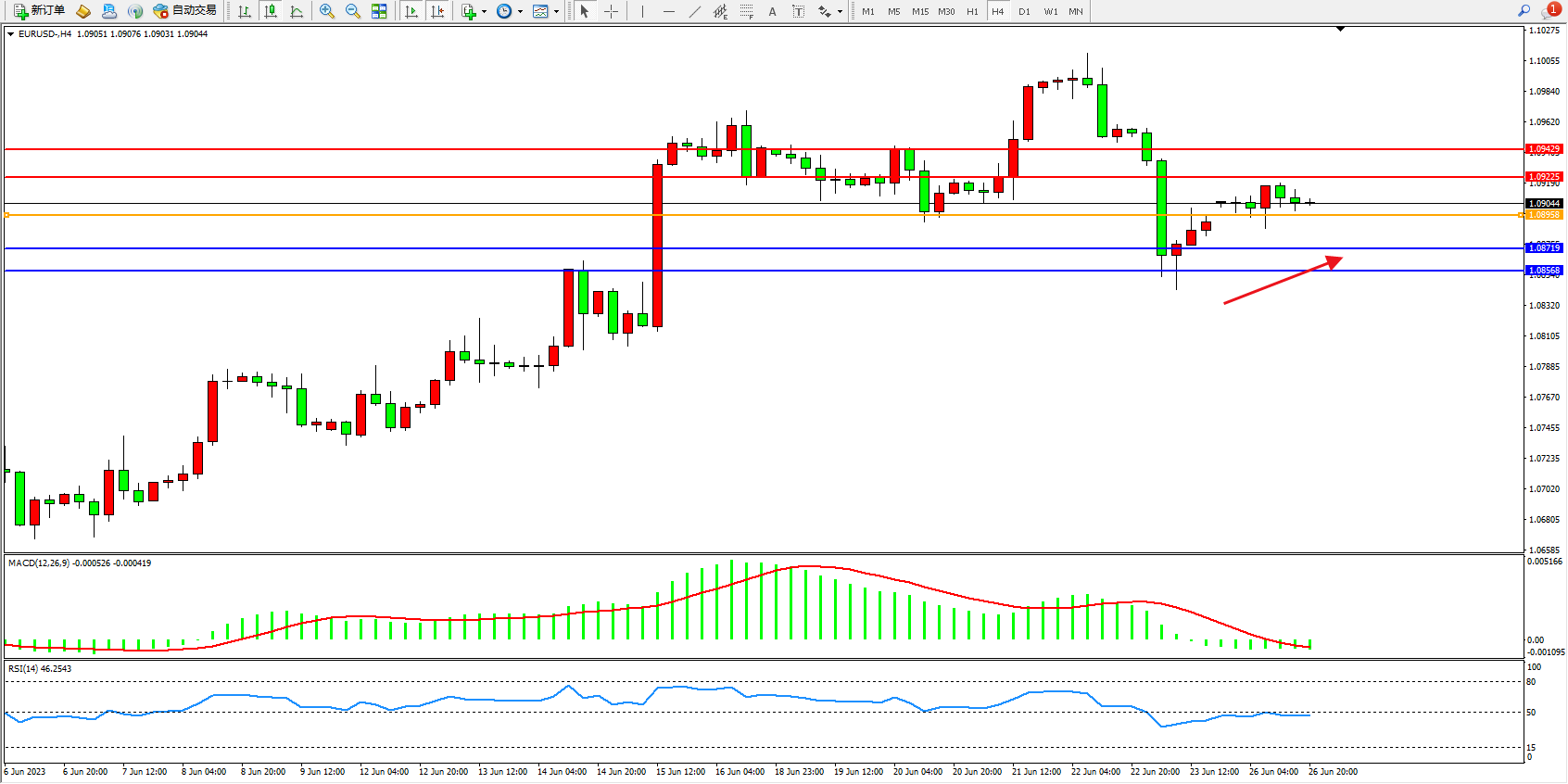 交易策略:1.08958上方看涨,目标1.09225 1.09429