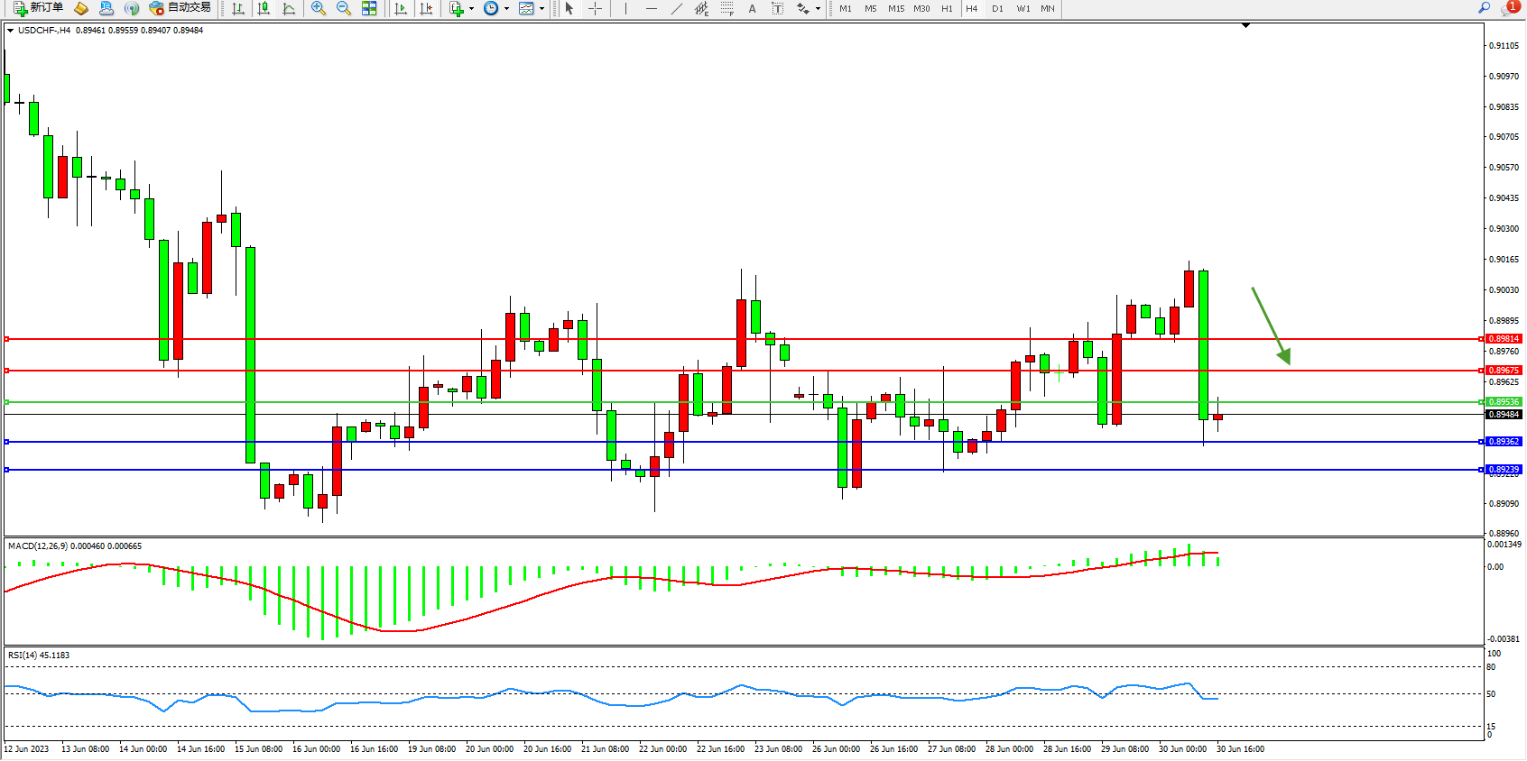 交易策略:0.89536下方看跌,目标0.89362 0.89239