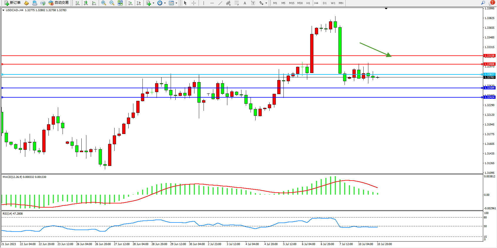 美元兑加元维持1.32783附近震荡,经济数据显示加拿大经济增长强劲、劳动力市场持续紧张以及潜在通胀仍然高企。在按兵不动五个月之后,加拿大央行6月将利率上调至22年高点4.75%,称货币政策限制力度不够。