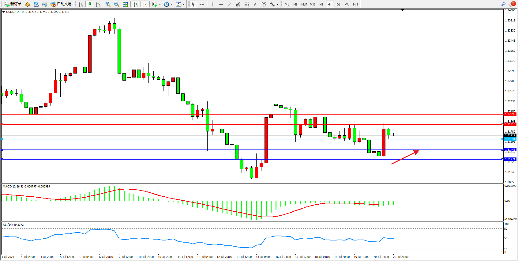 美元兑加元维持1.31712附近震荡,市场预计美联储接近结束加息周期,给油价提供支撑,投资者需要提防油价震荡筑顶的可能性。