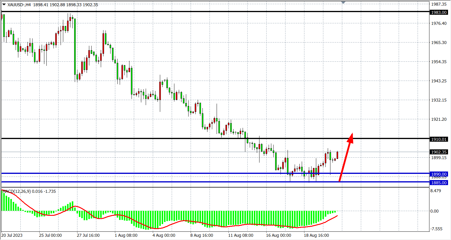现货黄金XAUUSD 四小时