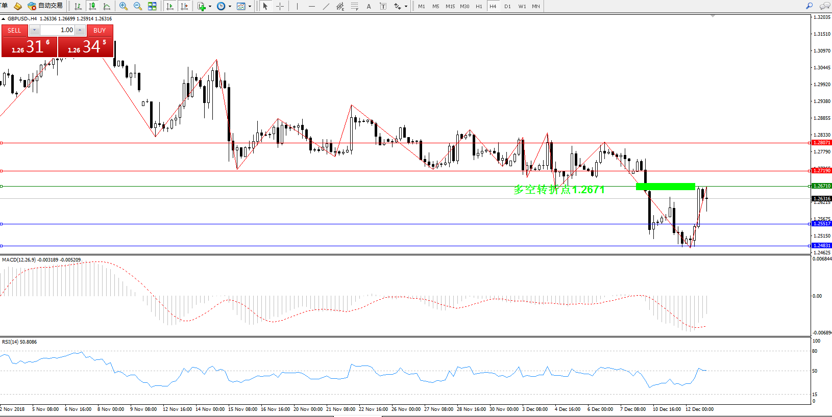 交易策略:1.2671上方看涨,目标1.2719、1.2807