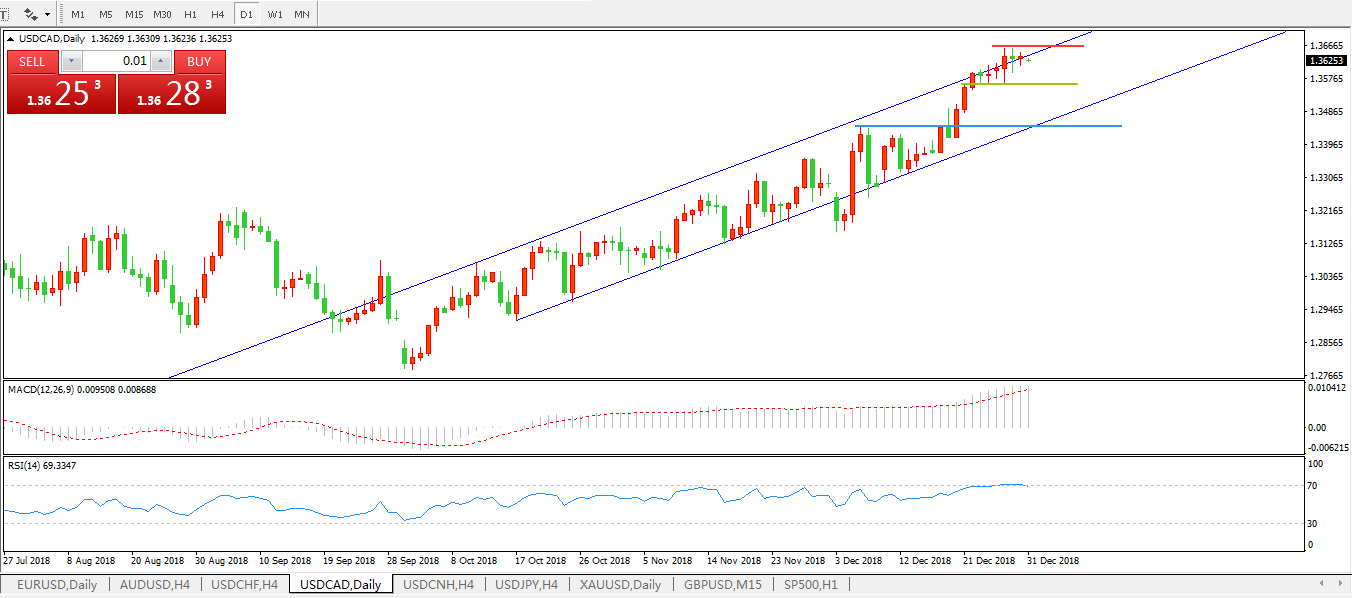 美元兑加元USDCAD 日线图: