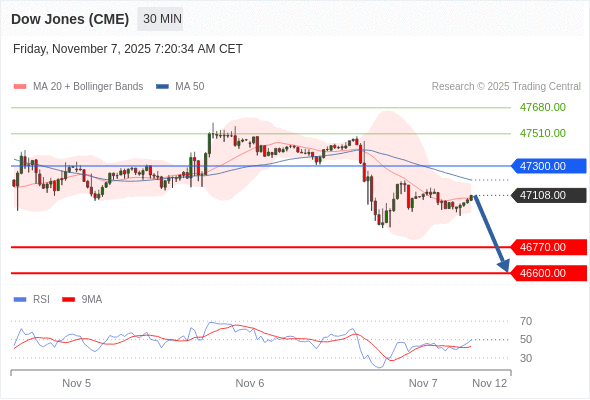在 47300.00 之下,看跌,目标价位为 46770.00 ,然后为 46600.00 。