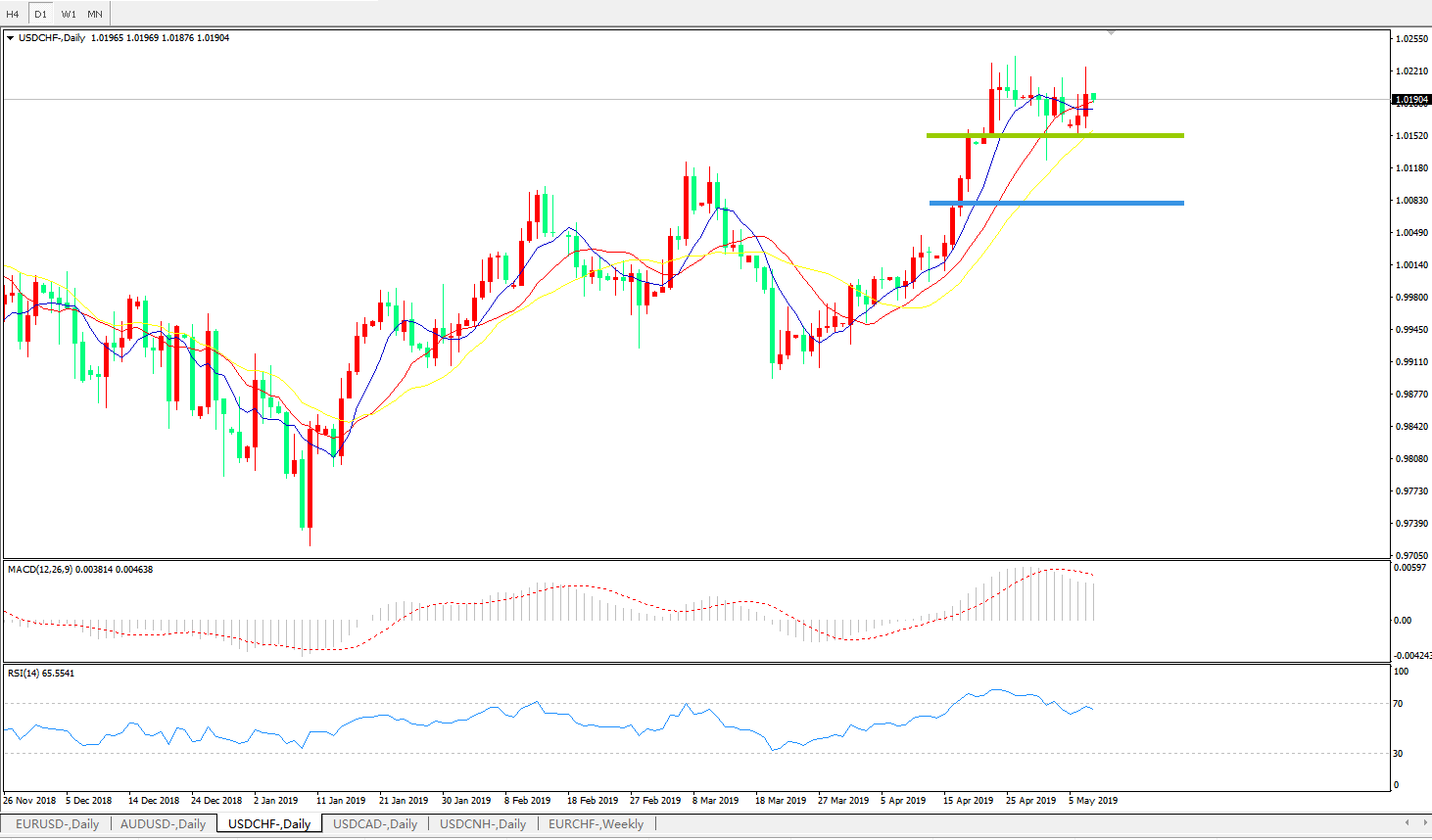 美元瑞郎USDCHF   日线图: