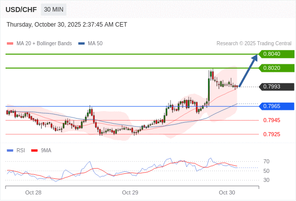 在 0.7965 之上,看涨,目标价位为 0.8020 ,然后为 0.8040 。