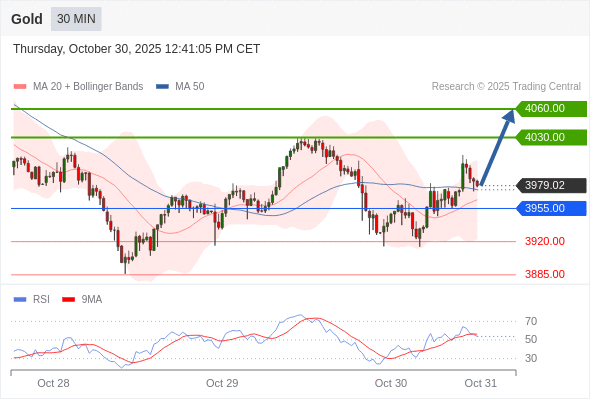 在 3955.00 之上,看涨,目标价位为 4030.00 ,然后为 4060.00 。