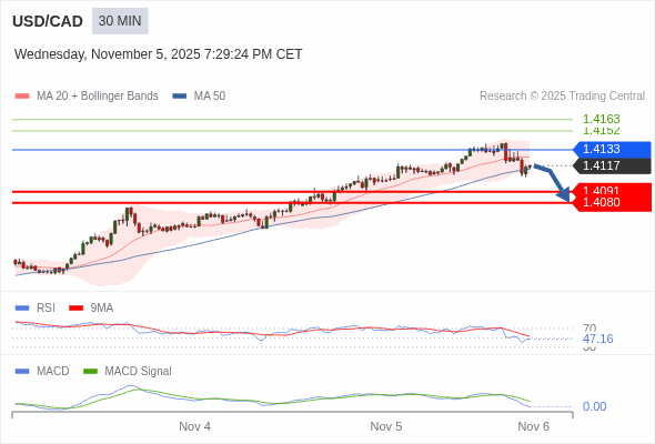 美元/加元 当日内 : 逐渐下跌,当 1.4133 阻碍上行,则 1.4080 为目标位。