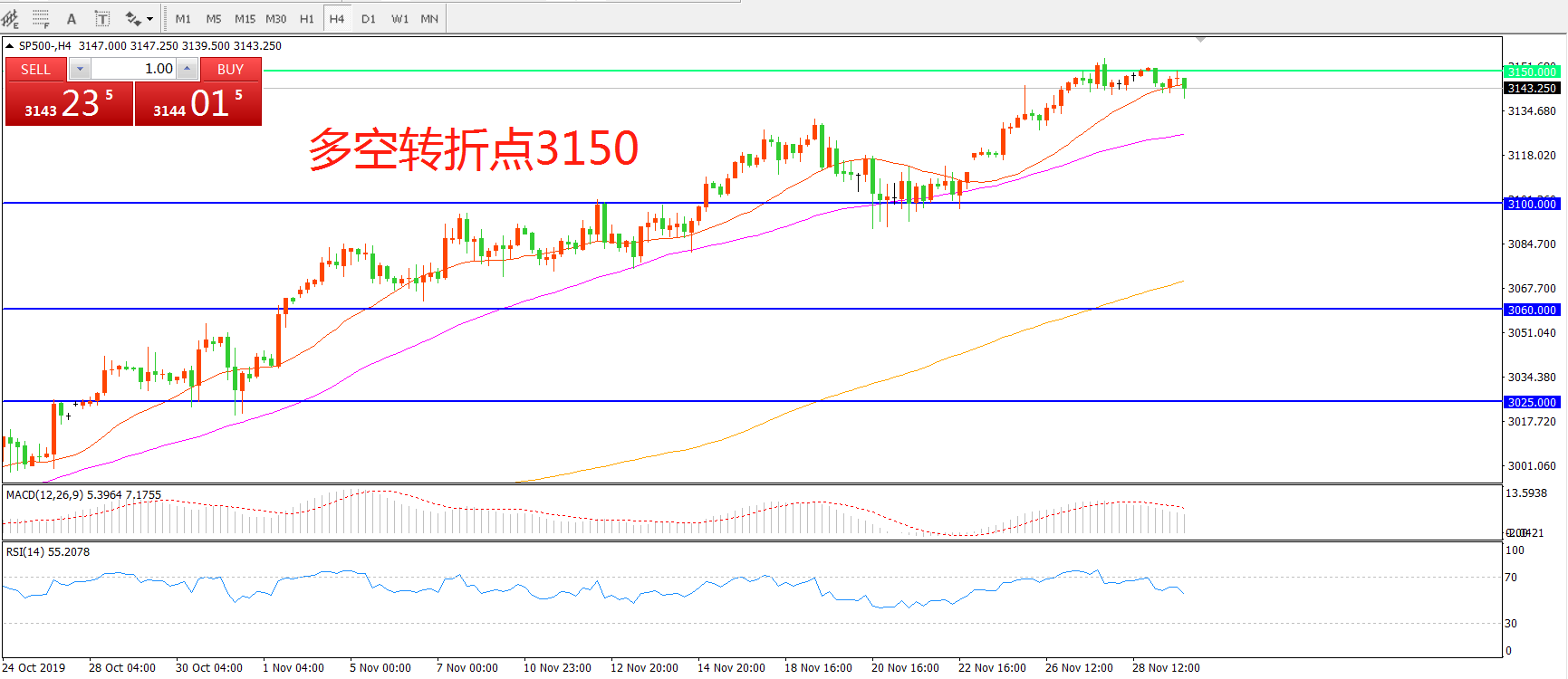 多空转折点:3150.00