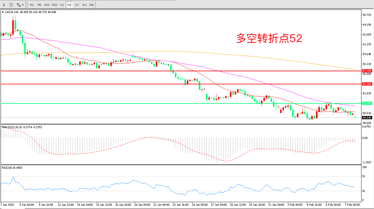 交易策略:在52.00之下看跌,目标49.00         45.00