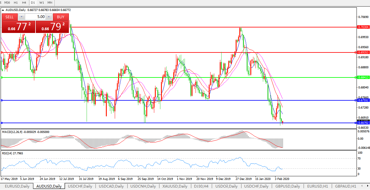 由于人们对突发公共卫生事件影响全球增长感到担忧,周五避险货币上涨,澳元跌至11年低点,而乐观的美国就业报告帮助推动美元创出一年多以来的最佳单周表现,并逼近四个月高点;在人民币疲软和股价回落的背景下,澳元兑美元一度下跌多达1%,至十一年低点0.6662美元兑日元下跌0.2%至109.76,为五天来的首次下跌;盘中低点是109.53;纽约交易员表示,汇率在有序交投中触发了109.60下方的止损盘,短线买盘在109.30附近,基金卖盘在110.00/30区域