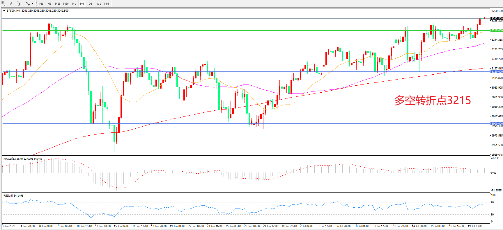 周一(7月20日),疫情不断恶化令美股承压,但新冠疫情再次传出利好提振了市场情绪,标普500震荡走高,收报3242点。美国疫情的升级正在使人们对经济将可快速强劲复苏的希望变得越来越渺茫,如果没有广泛可用的治疗方法/疫苗,恢复正常的经济活动可能非常困难,因此,市场可能会对疫苗的发展保持高度敏感。