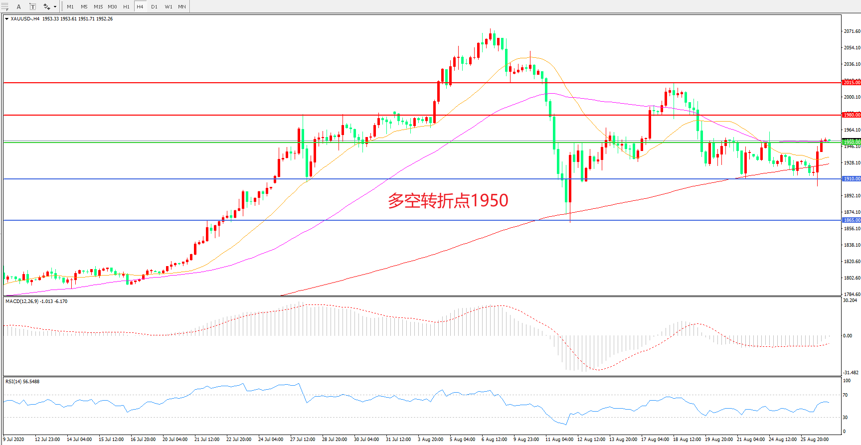 交易策略:在1950.00之下看跌,目标1910.00   1865.00