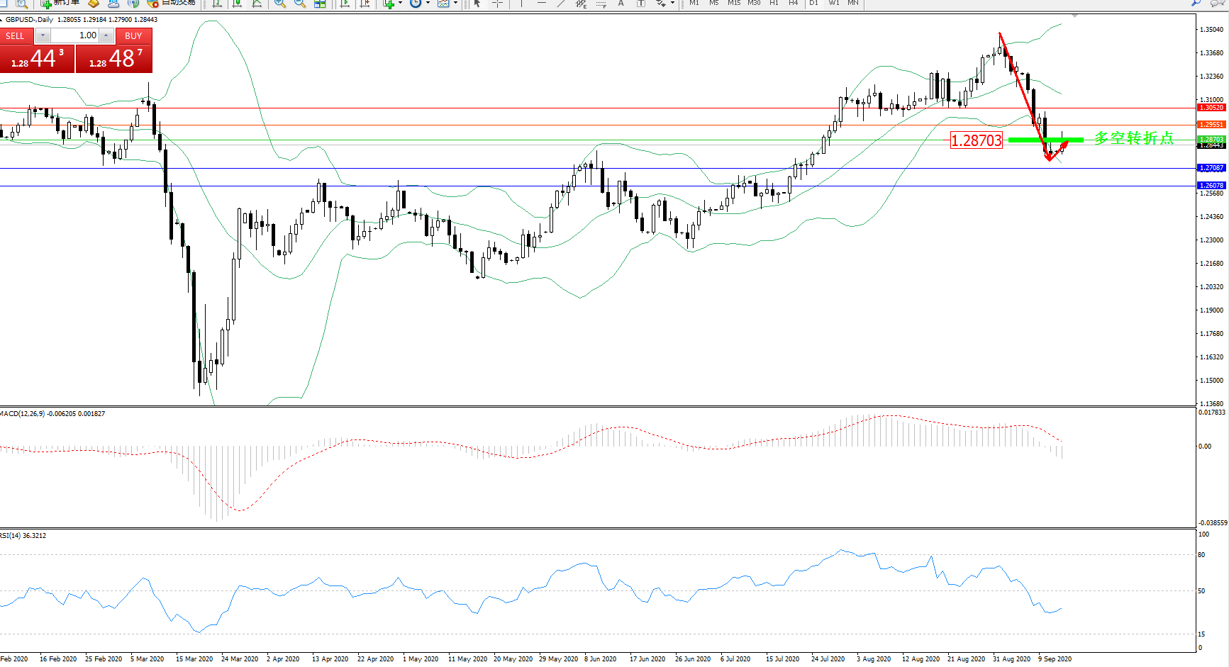 交易策略:1.28703下方看跌,目标1.27087、1.26078