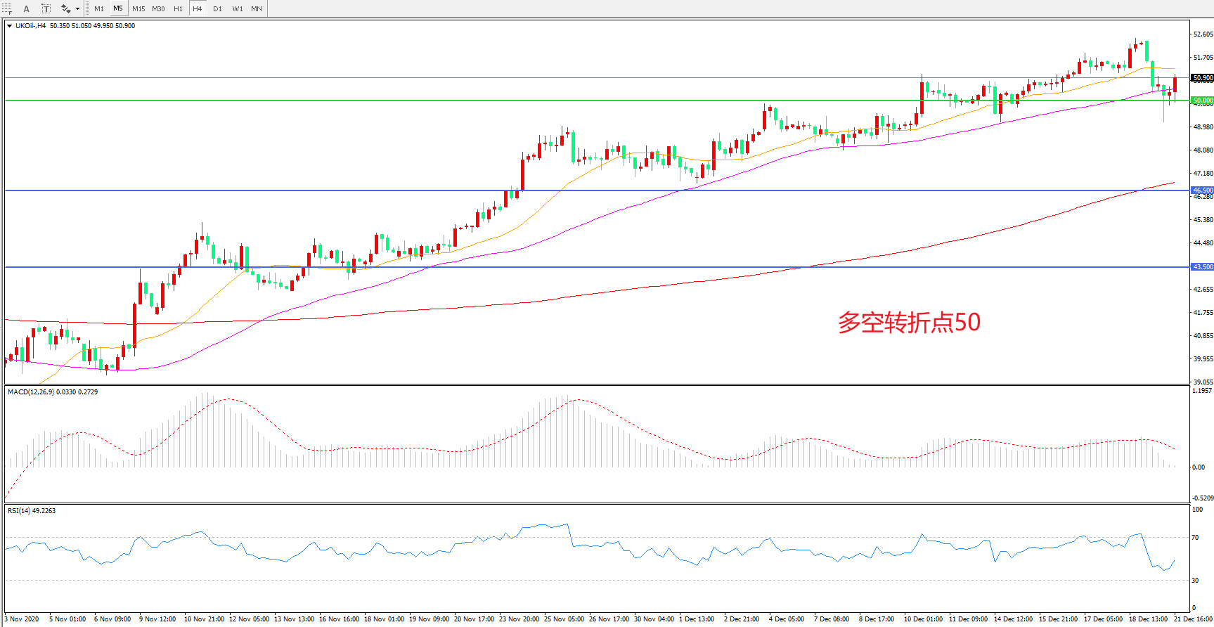 周一(12月21日),由于英国发现的变异新冠病毒毒株,市场担心新的一轮疫情来袭导致更多封锁,油价一度大幅下挫,但俄罗斯表态仍可能推动进一步缩小减产的规模,布伦特原油小幅回升,收报50.90美元/桶。综合来看,市场的回调情绪仍然没有消退,不排除未来几天原油价格再度下跌的可能。