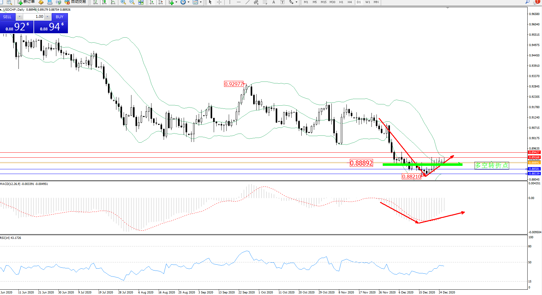 备选策略:0.88892上方看涨,目标0.89168、0.89427