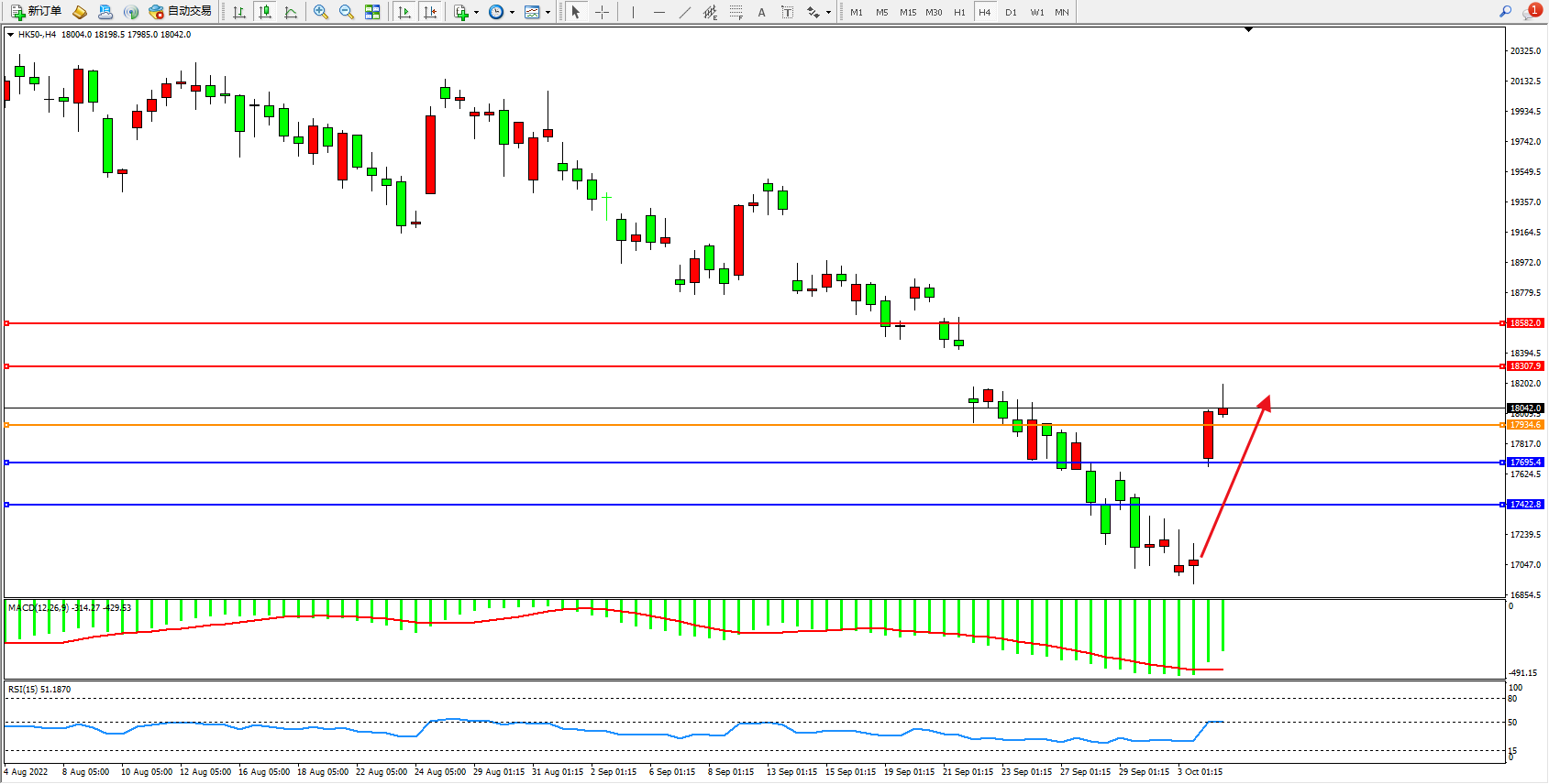 香港恒生指数10月5日(周三)收盘上涨1008.46点,涨幅5.9%,报18087.97点;美股连涨2日,道指两日累升近1600点,港股假后报复式反弹。恒指全天收涨超1000点重上18000关口,恒生科技指数暴涨7.54%;大市成交1054亿港元;京东集团涨近10%领涨科技股,网易、阿里巴巴、快手、美团涨超8%。