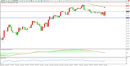 高位空头动力维持窄幅整理缓慢下行,市场空头情绪笼罩,上方压制关注1.23716附近,低位支撑关注1.17887附近,MACD指标处于0轴线附近徘徊,RSI指标处于50均衡线附近窄幅整理;