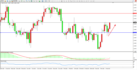 英镑盘尾报1.2192美元,上涨0.70%,英镑存在上升空间。硅谷银行的倒闭潮延伸至欧洲瑞士,瑞士信贷和第一共和银行的股价进一步下跌