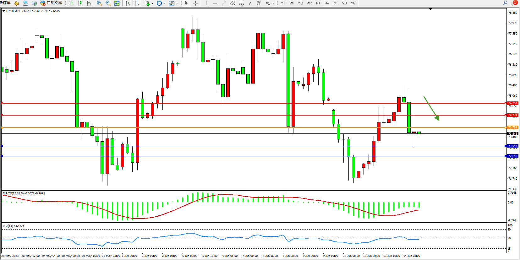 4小时图看:空头动力持续震荡下移,短期跌势或将延续,市场空头情绪强势,MACD指标处于0轴线下侧弱势整理,RSI指标处于50均衡线下侧弱势徘徊;