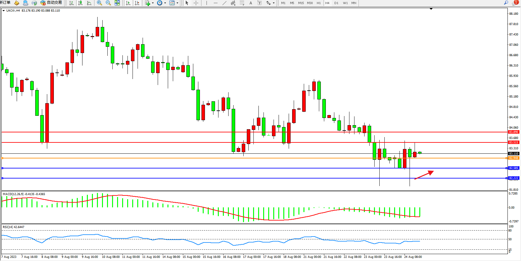 布油UKOil——4小时K线图显示: