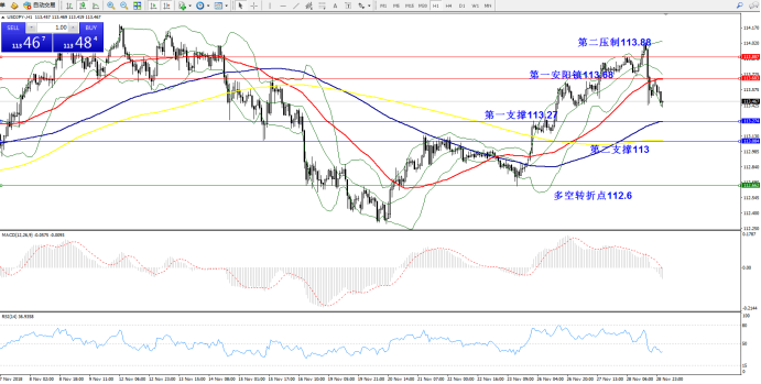 交易策略:倾向于高位做空,破位第一支撑113.27伺机空单进场,目标112.6位置;