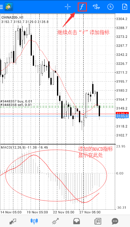 若需添加MACD双线,请点击下载文件,复制到文件夹\MQL4\Indicators,在MT4里面插入自定义指标即可。